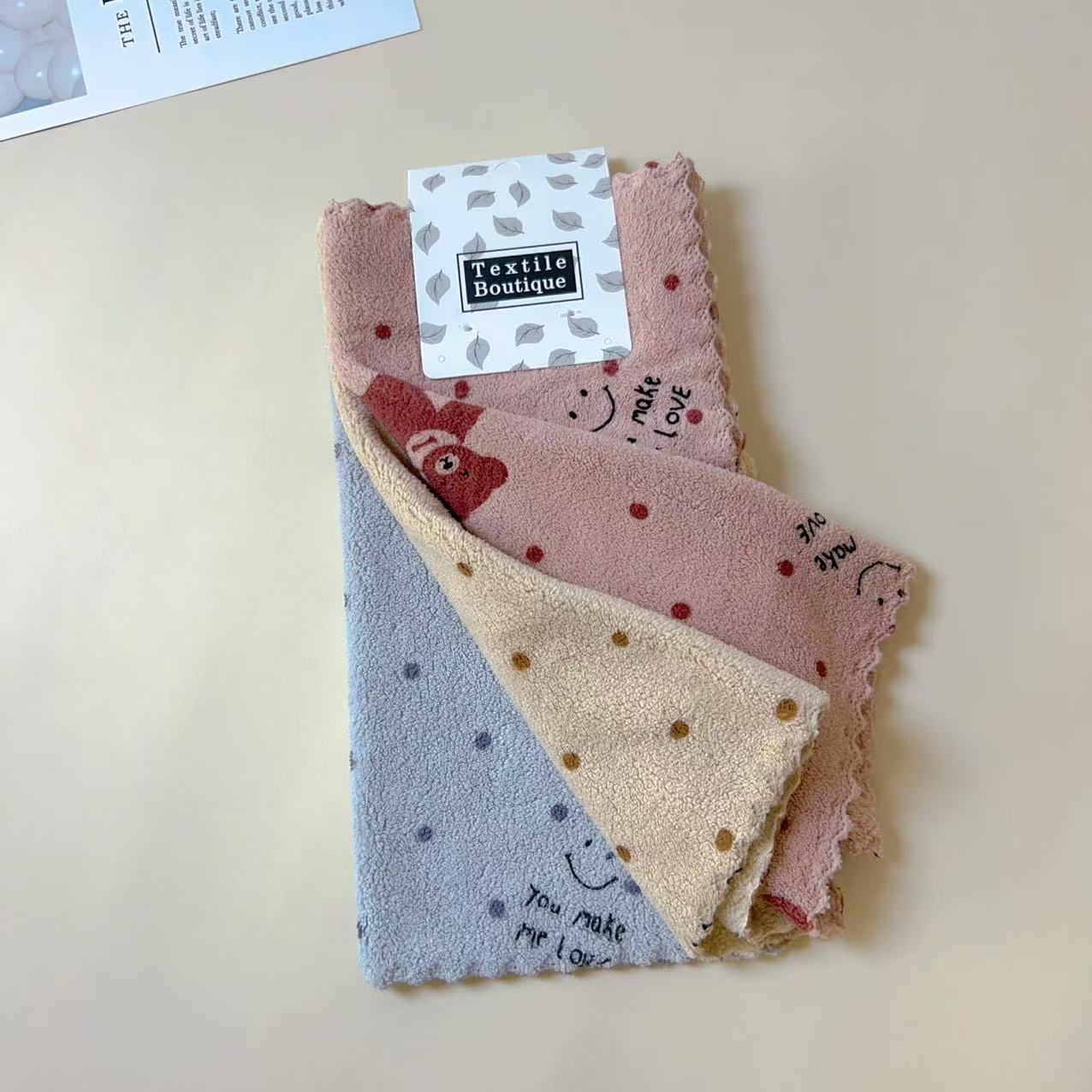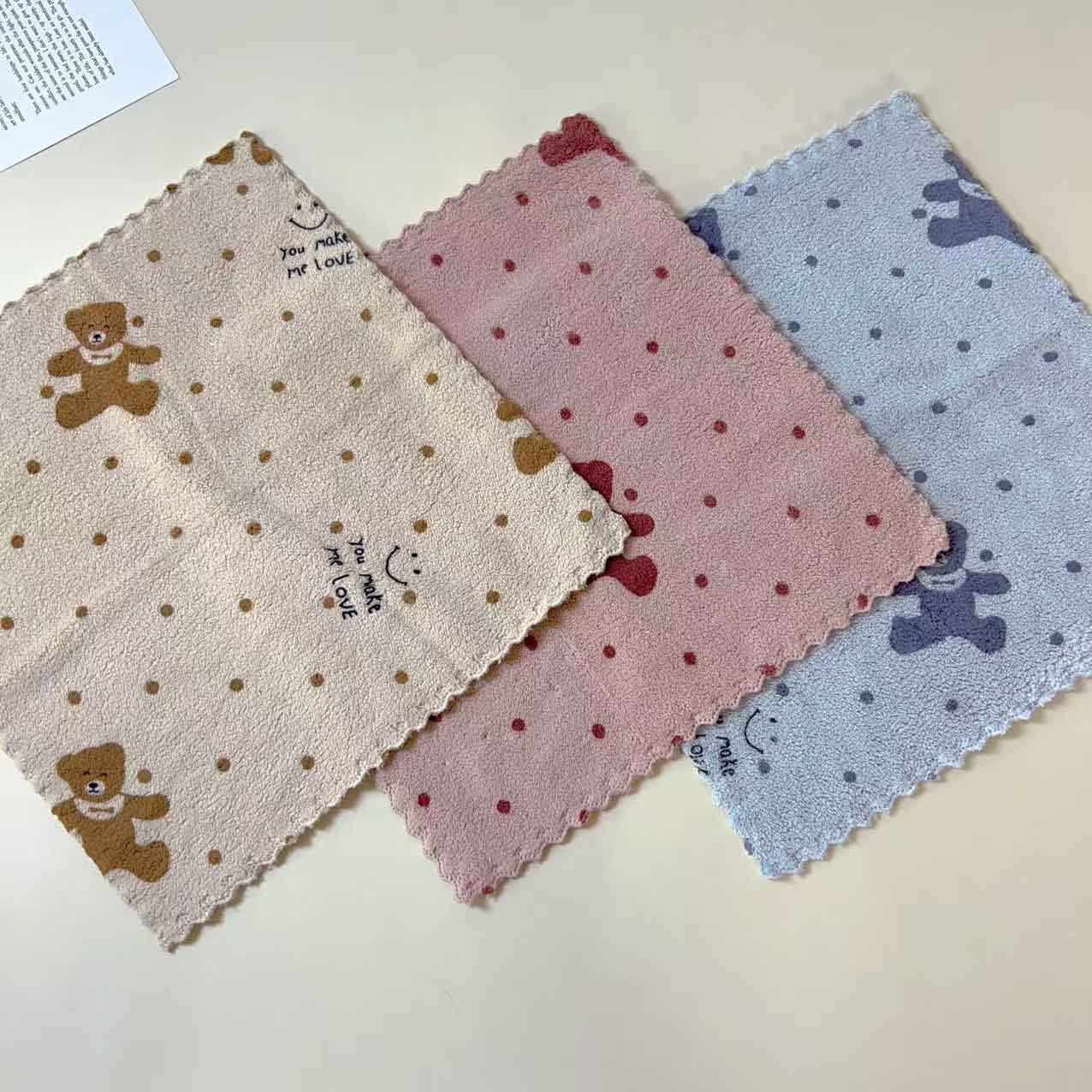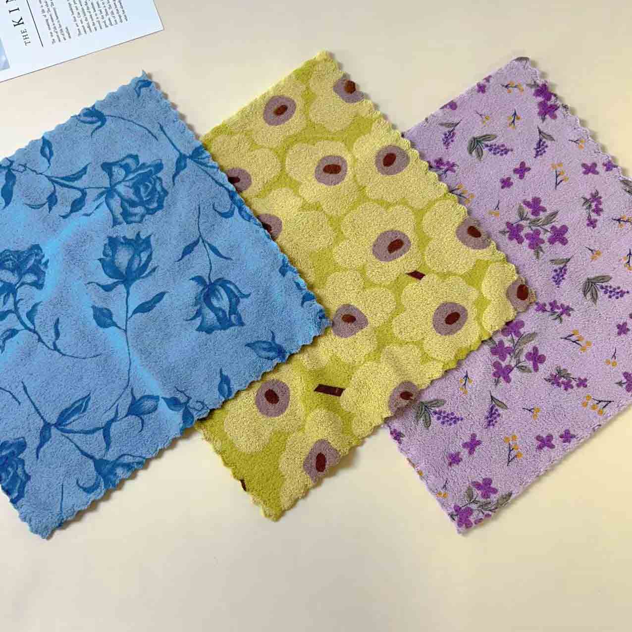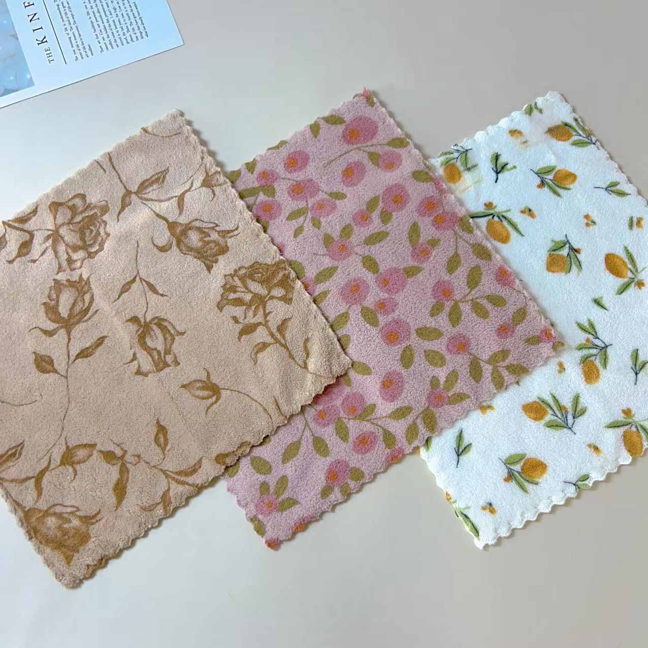 Clean Household Thickened Printed Square Coral Fleece Kitchen Cloths 3PCS |